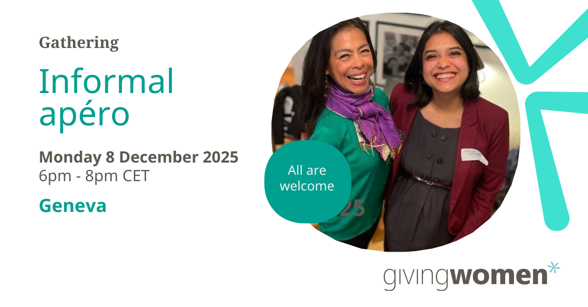 So come and get to know other Giving Women members and the exciting work they are all doing, and be inspired over a light Apero at our offices.